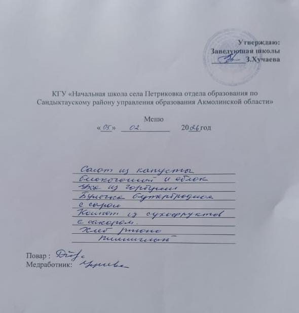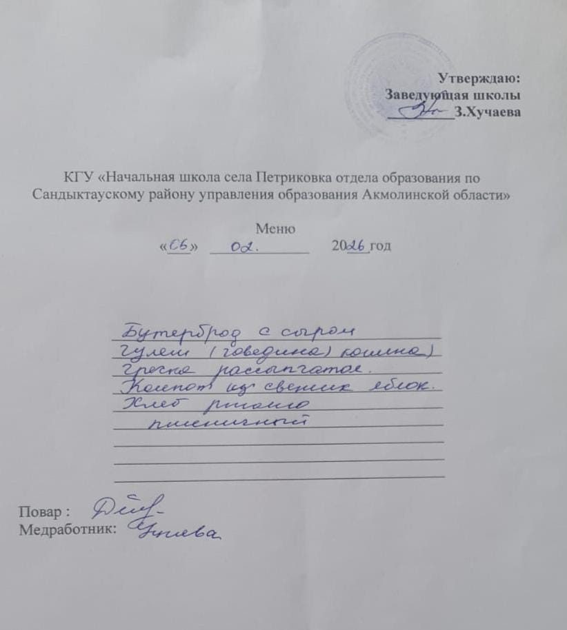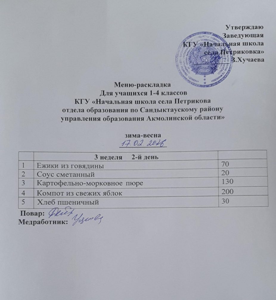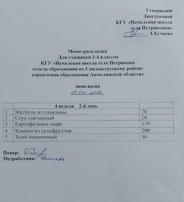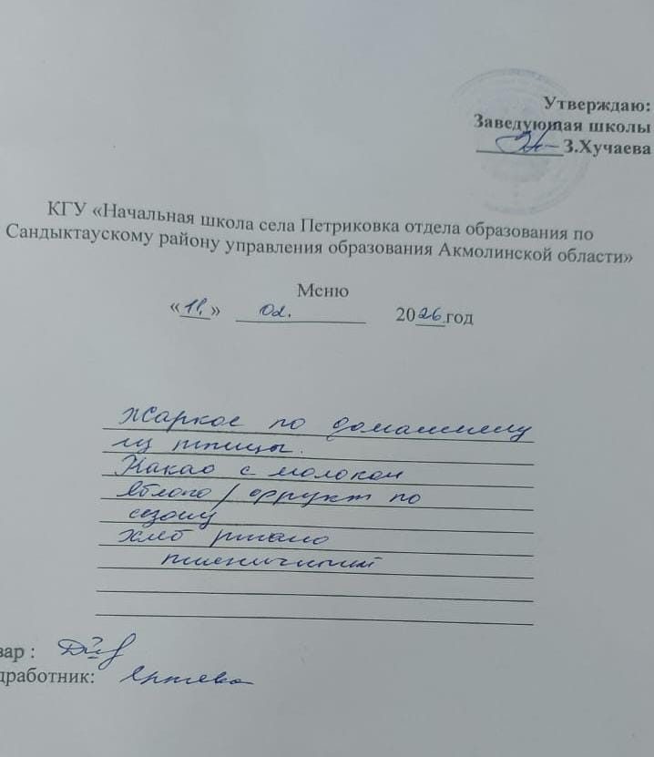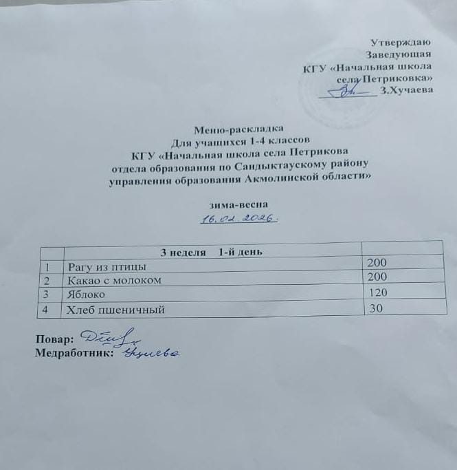 Коммунальное государственное учреждение "Начальная школа села Петриковка отдела образования по Сандыктаускому району управления образования Акмолинской области"
