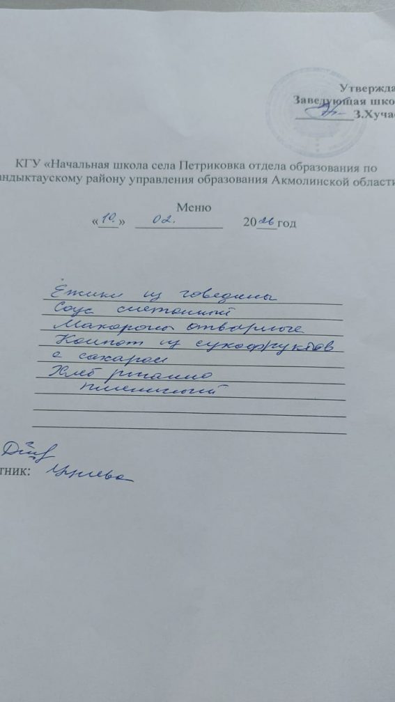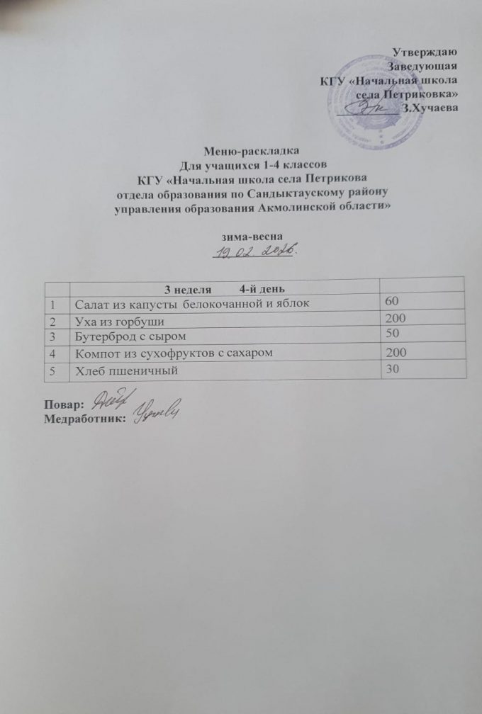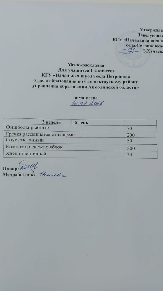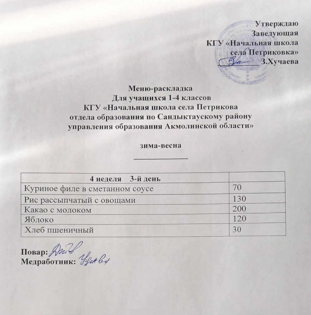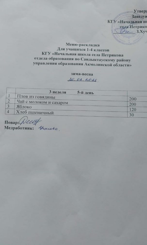 Коммунальное государственное учреждение "Начальная школа села Петриковка отдела образования по Сандыктаускому району управления образования Акмолинской области"