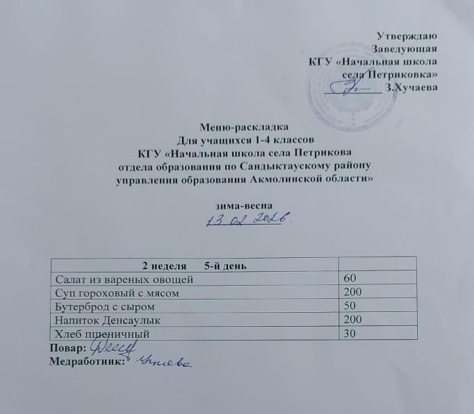 2025-2026 оқу жылының екінші жартыжылдығына арналған мәзір