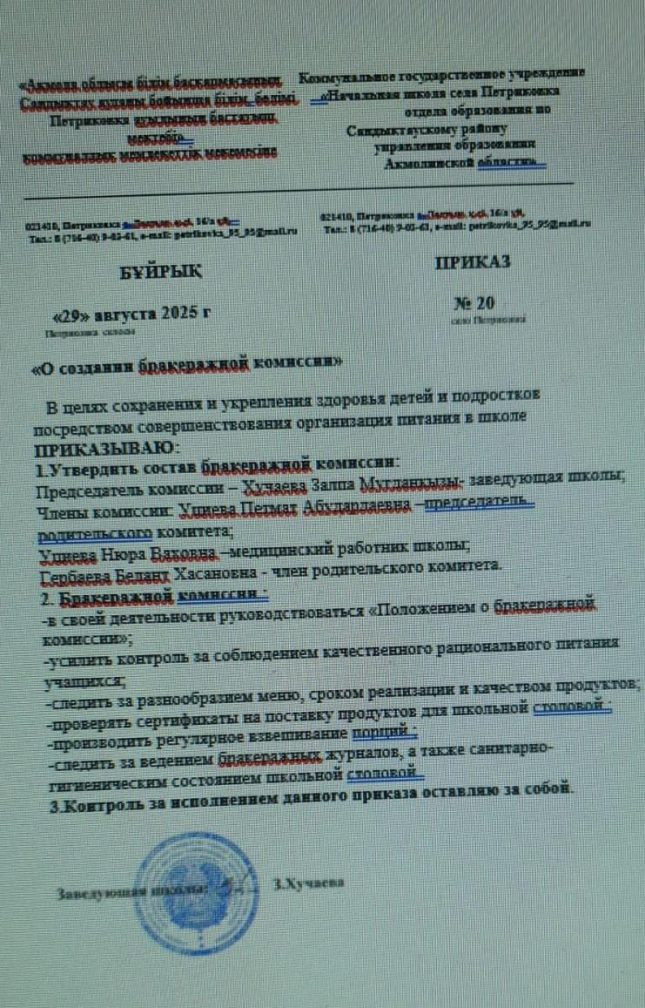 2025-2026 оқу жылына бракераж комиссиясын құру туралы бұйрық