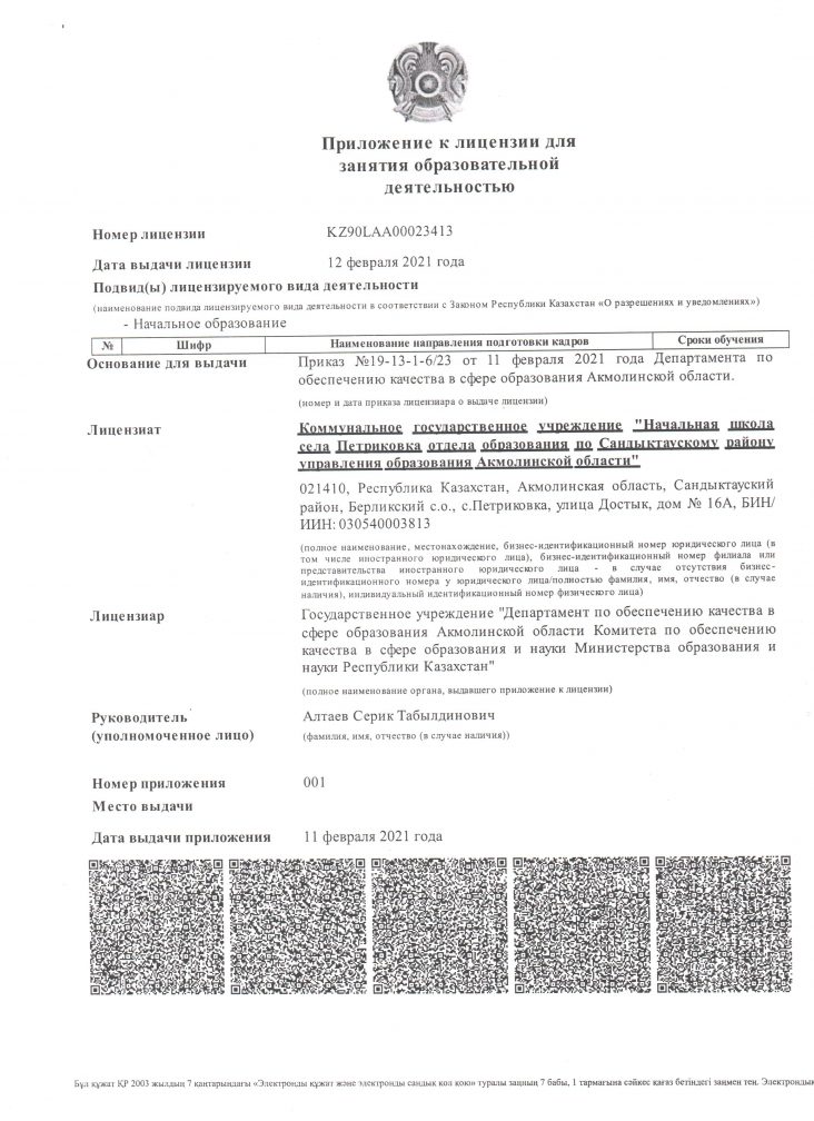 Коммунальное государственное учреждение "Начальная школа села Петриковка отдела образования по Сандыктаускому району управления образования Акмолинской области"